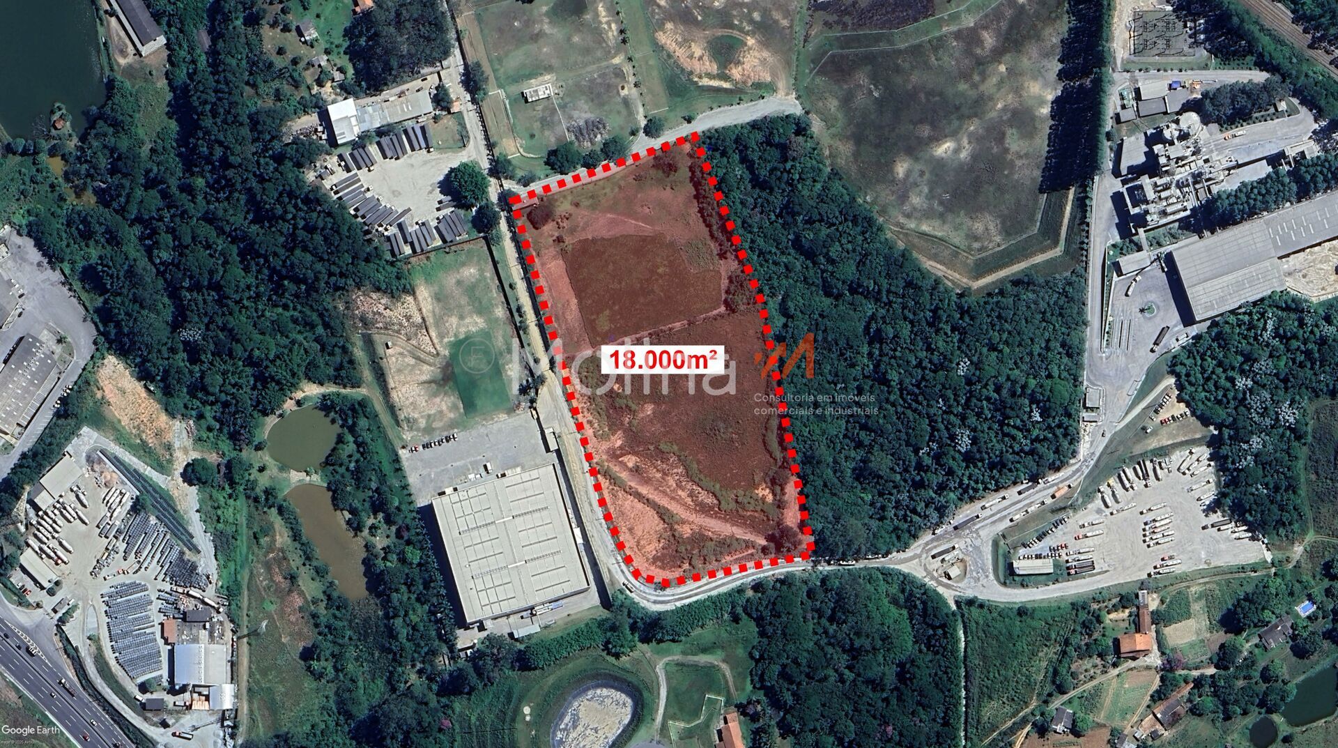 - Venda da área total (18.000m²) ou parcial (9.000m²).