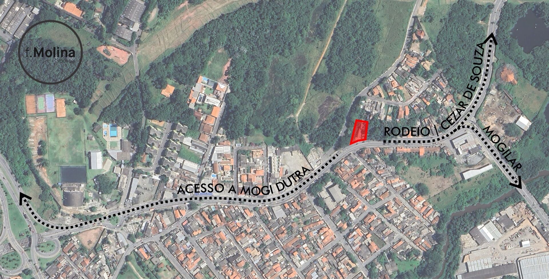 Esta área de 1090m2 e 32m de testada fica em um ponto estratégico, fluxo intenso de automóveis, entre o Mogilar e a Ponte Grande próximo da saída de acesso para a Mogi Dutra.
