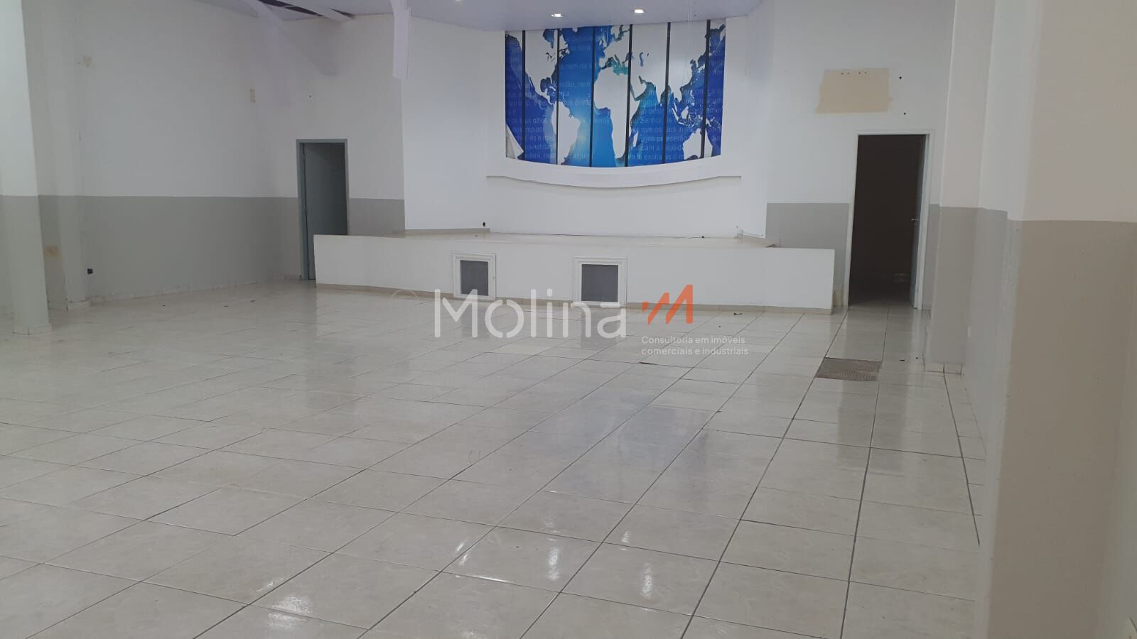 - Salão Principal: Amplo e livre de colunas centrais, com piso em cerâmica e acabamento em duas cores.